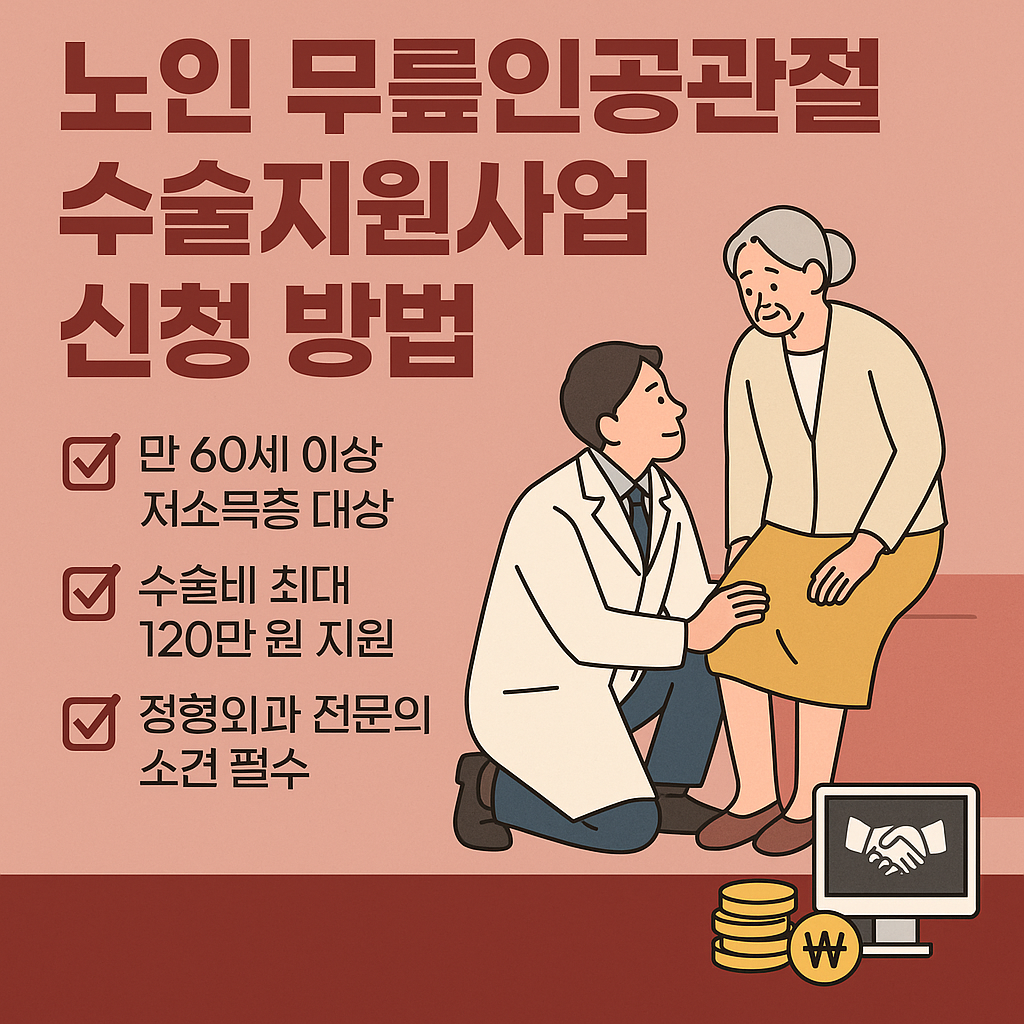 ✔️ 무릎 통증으로 일상생활이 어려운 저소득 노인을 위해 정부가 무릎인공관절 수술비를 지원하는 사업을 운영하고 있습니다.