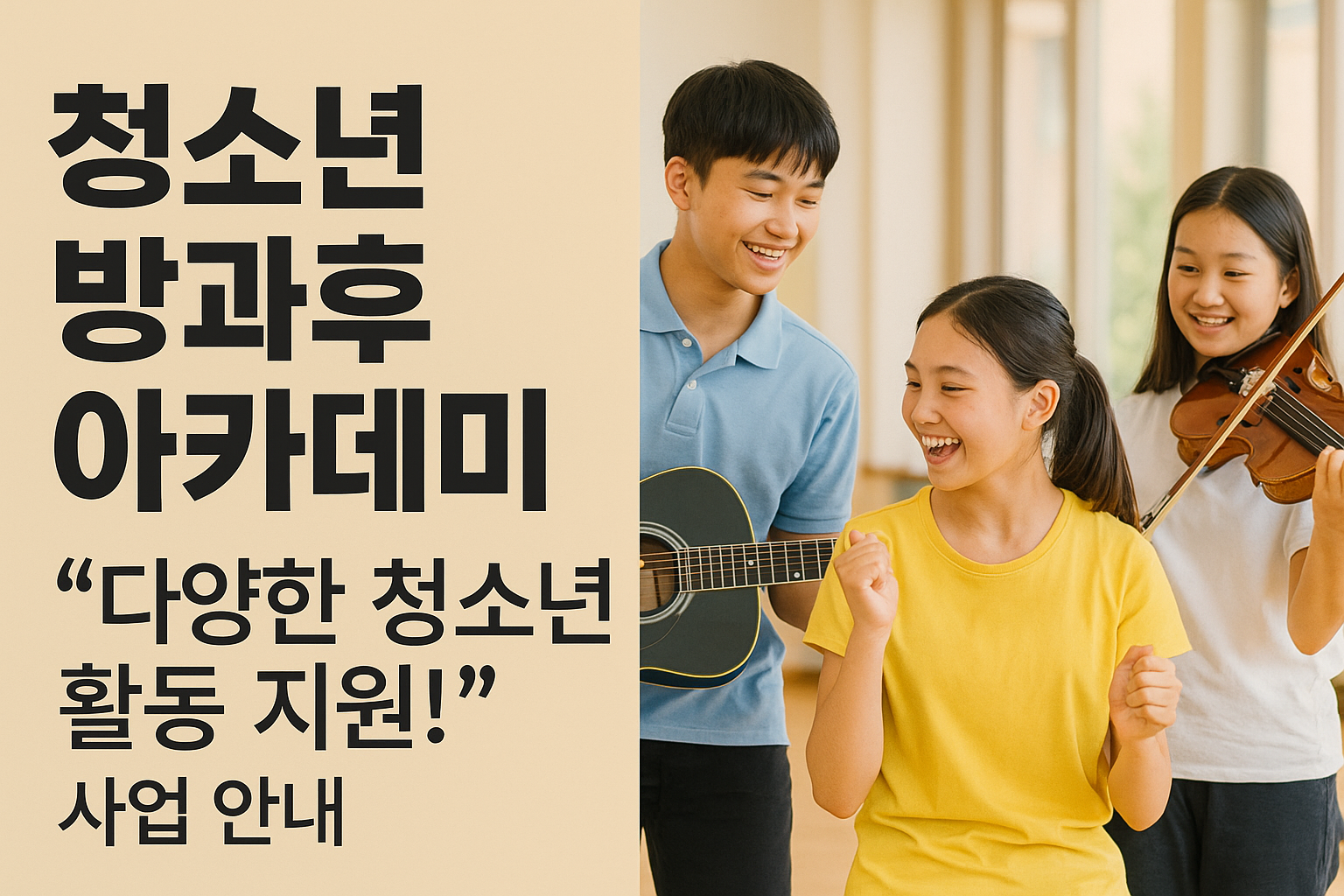 ▶ 청소년 방과후 아카데미 신청 및 운영기관 확인 (여성가족부)• 문화활동, 진로탐색, 상담지원까지 통합 운영하는 공공형 프로그램입니다.