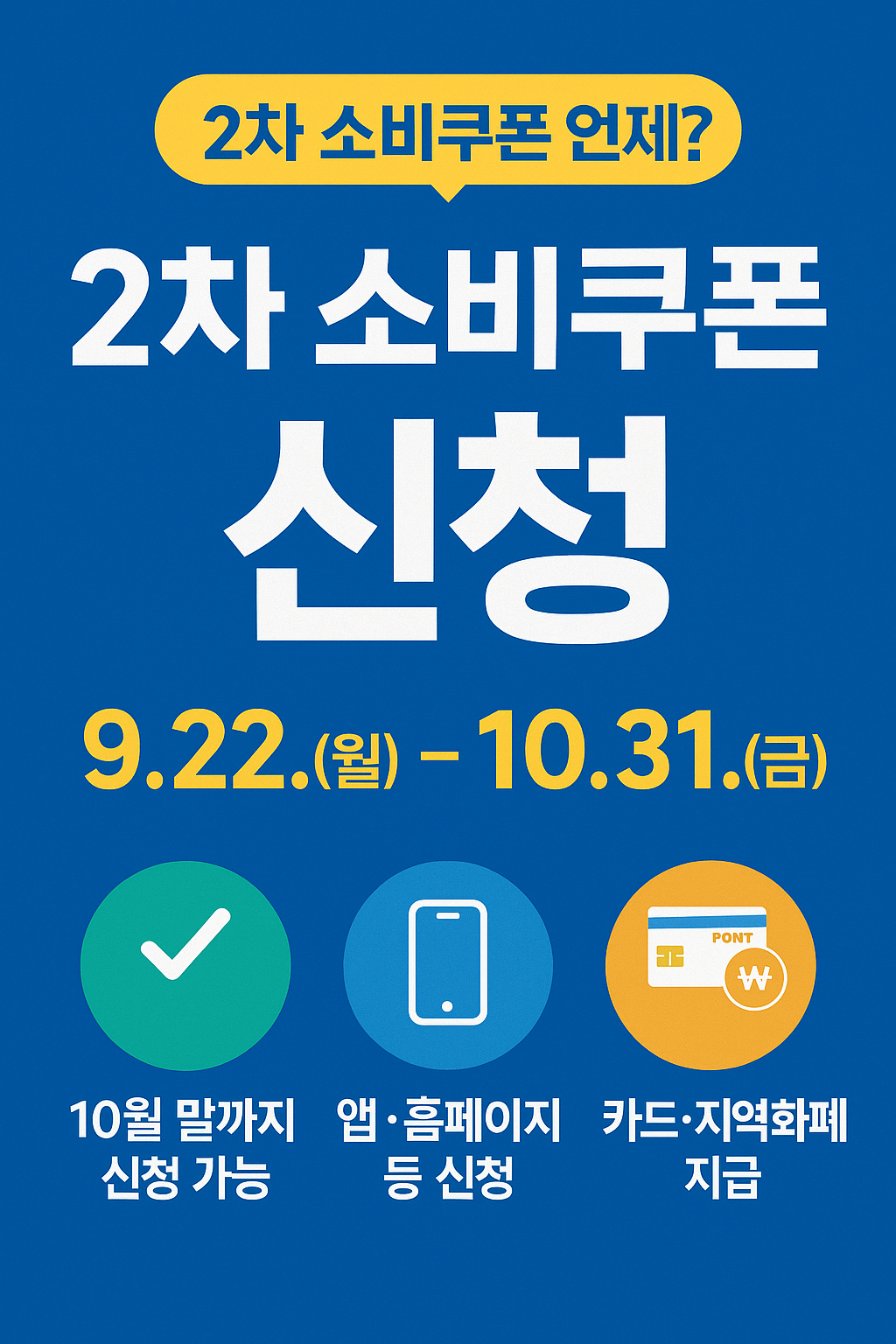 📌 민생회복을 위한 2차 소비쿠폰 신청이 2025년 9월 22일(월)부터 시작됩니다.